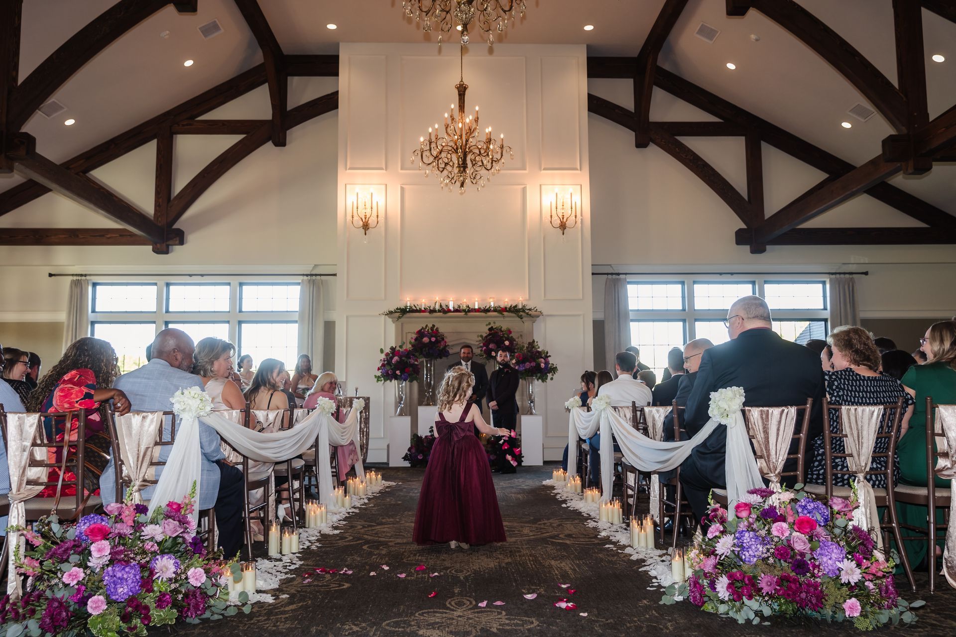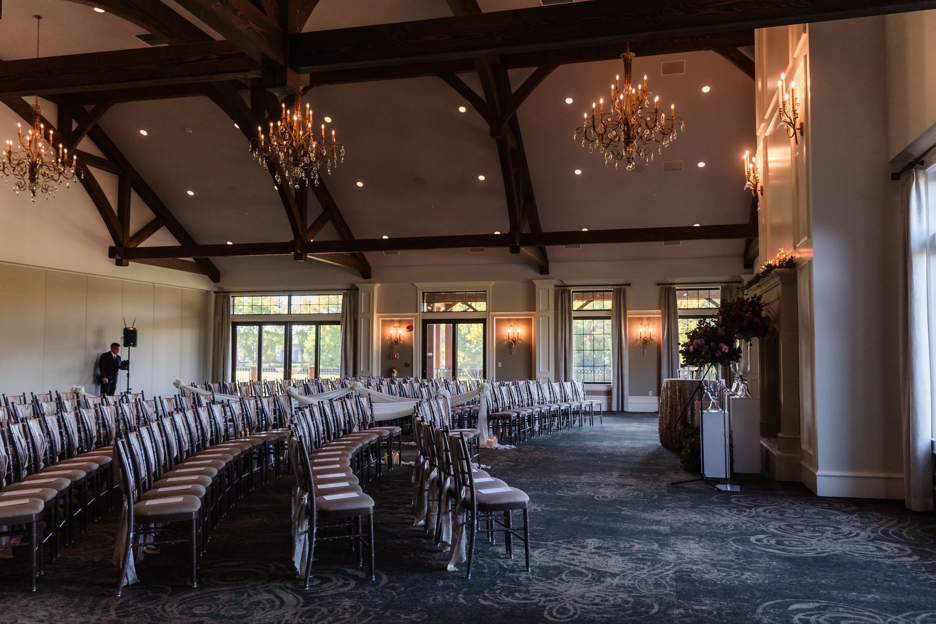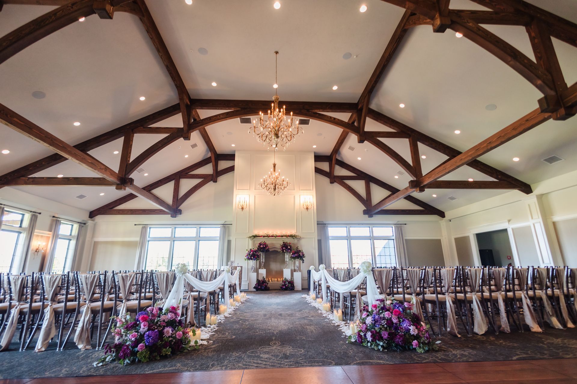Weddings in our grand ballroom, where rustic charm meets elegant sophistication. With sparkling chandeliers, cozy fireplaces, and warm finishes throughout, the space is perfect for celebrating love in style. Every detail creates a welcoming, timeless atmosphere for your unforgettable day.