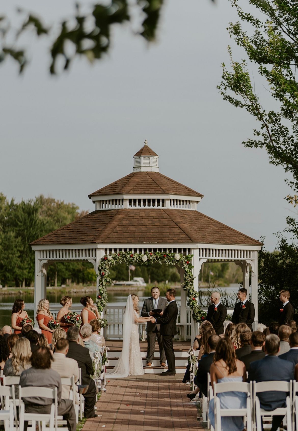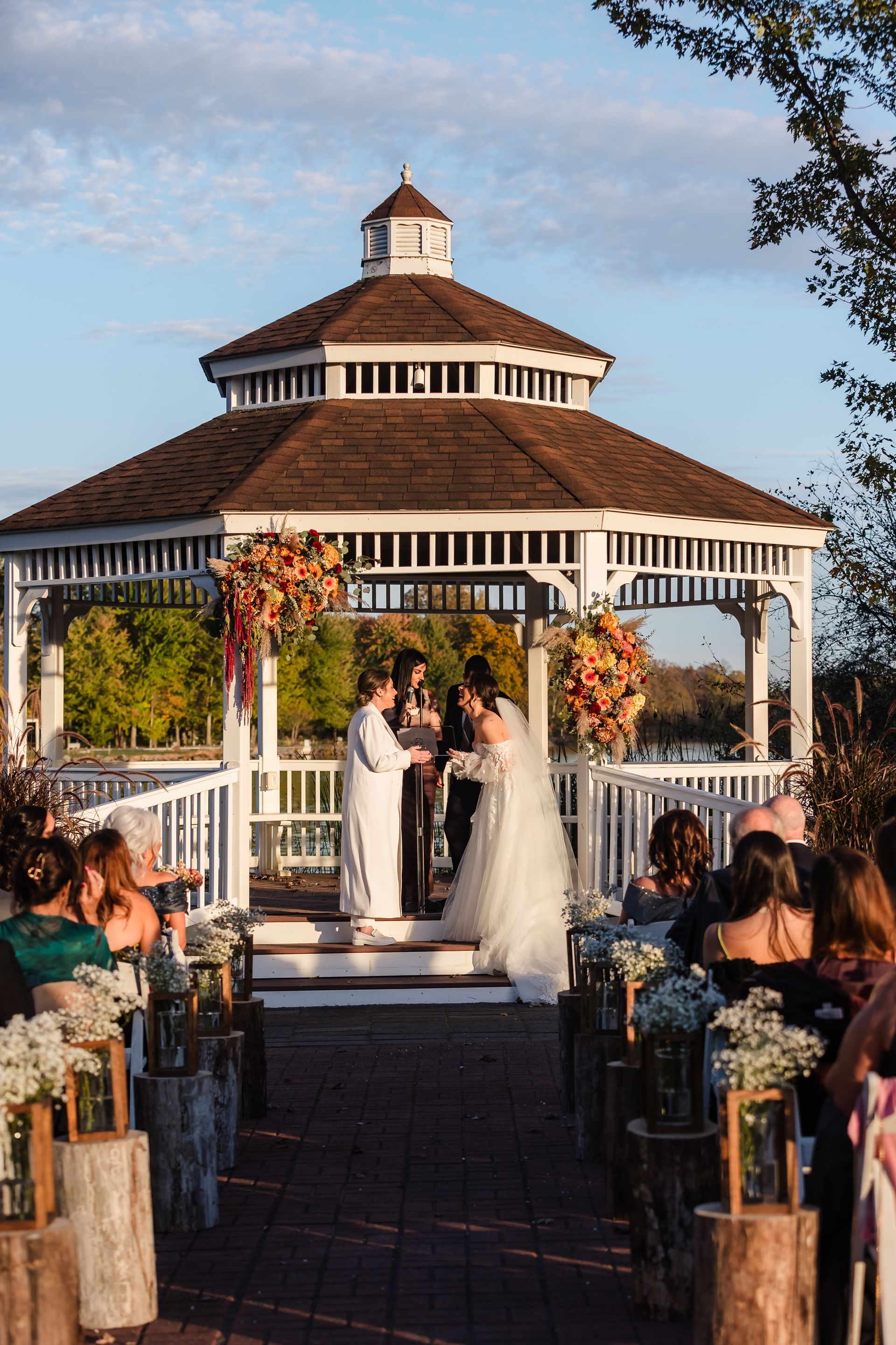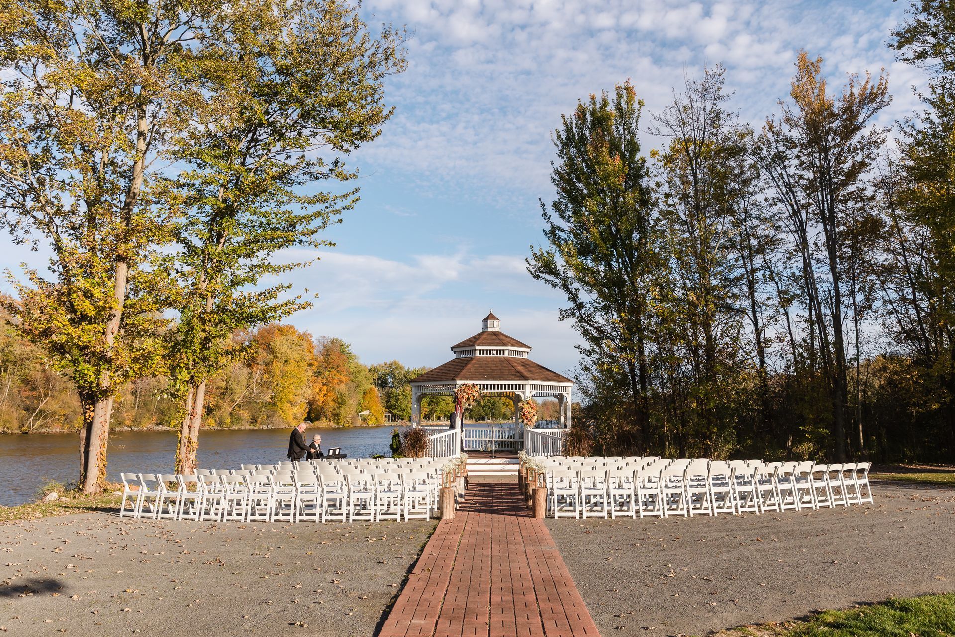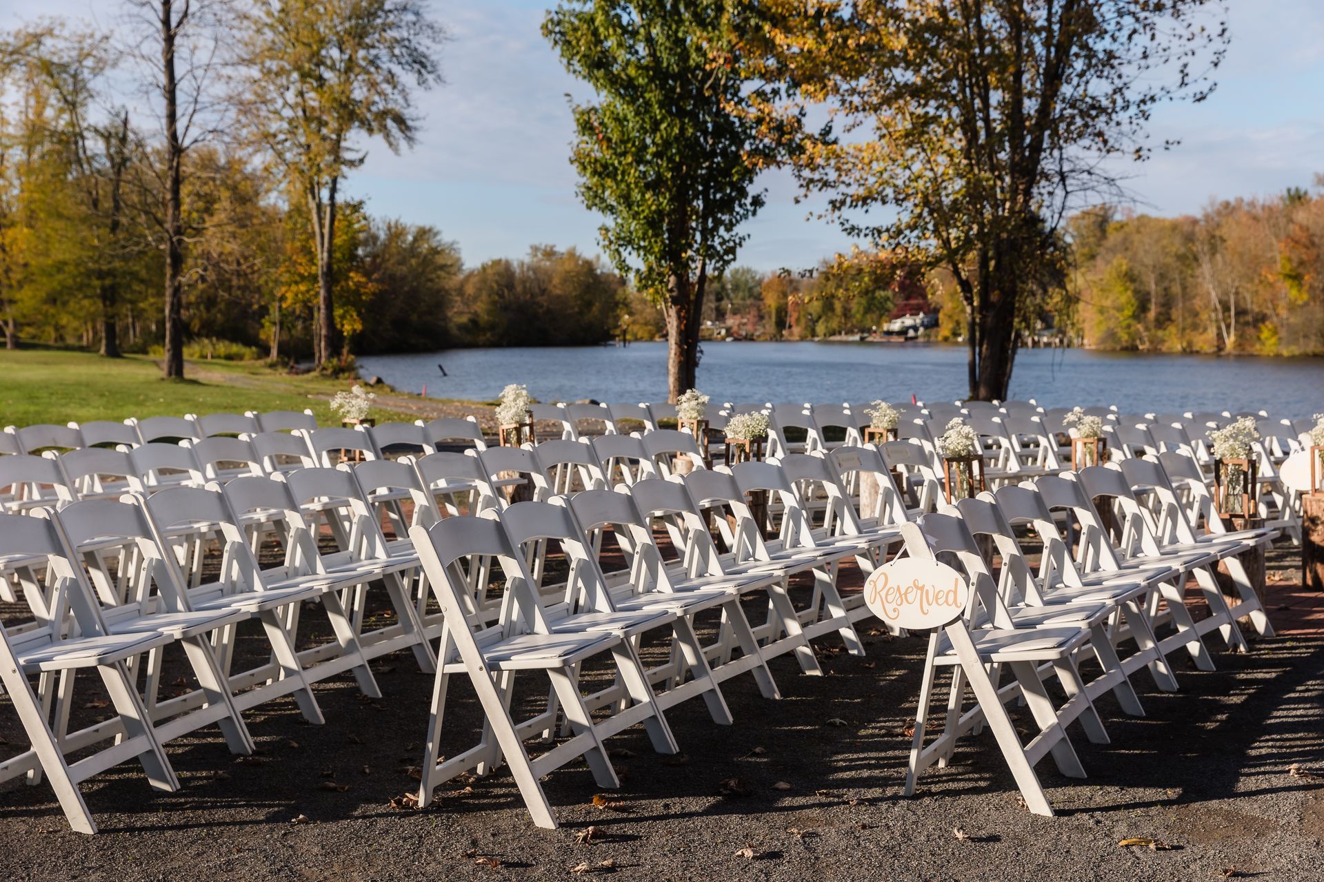 Celebrate your wedding in our serene ceremony space, nestled along the river and canopied by graceful trees. Its natural beauty creates a peaceful, romantic setting perfect for spring, summer, or fall weddings. Every moment here is framed by the sights and sounds of nature, making your day truly unforgettable.